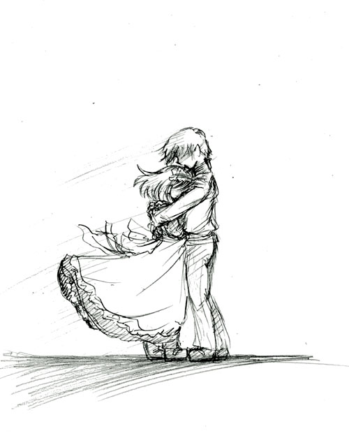 彼が彼女の手を掴んで走り出すと、どこからともなく口笛と、笑い声の重奏が起こった。