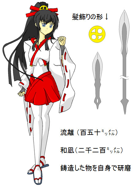 - 装備:苦無『流離(さすらい)』、槍『和凪(なぎ)』