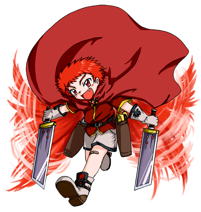 燃えるような緋色の髪に加え強気な顔が物語るかのごとく元気・無鉄砲・目立ちたがり屋な性格。
