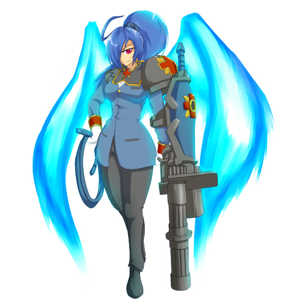 翼は煌然なる青色二翼。地面すれすれの超低空飛行とそれによる地上戦闘を得意とし、熱