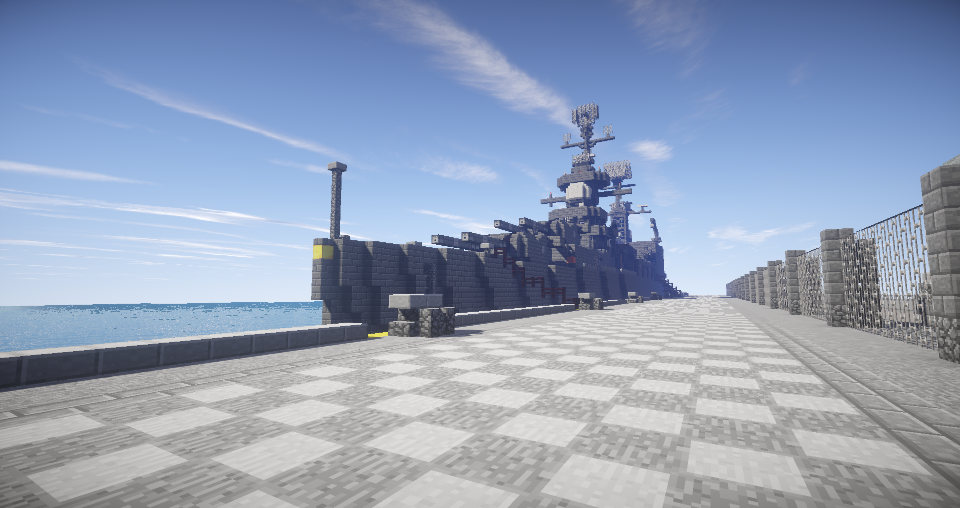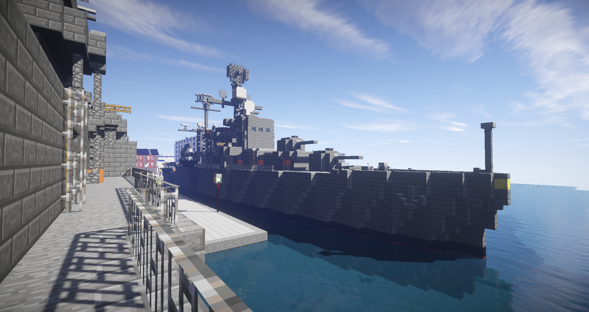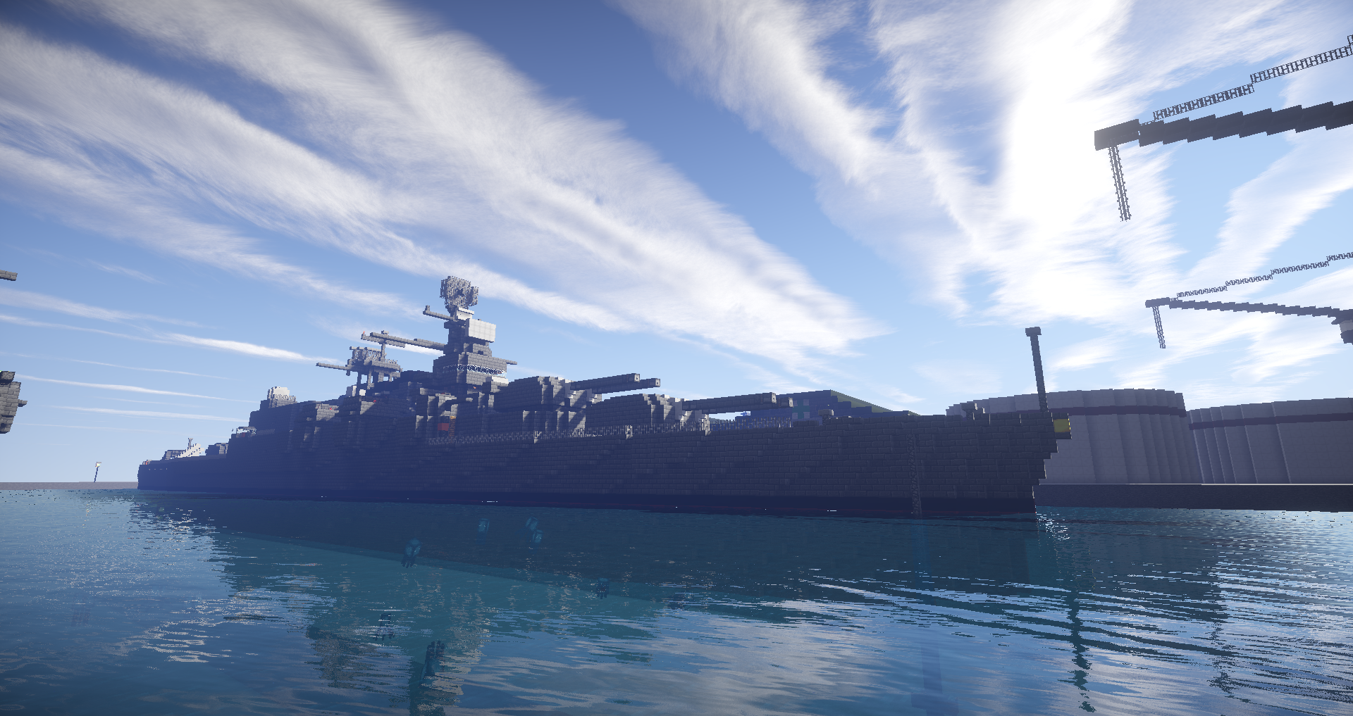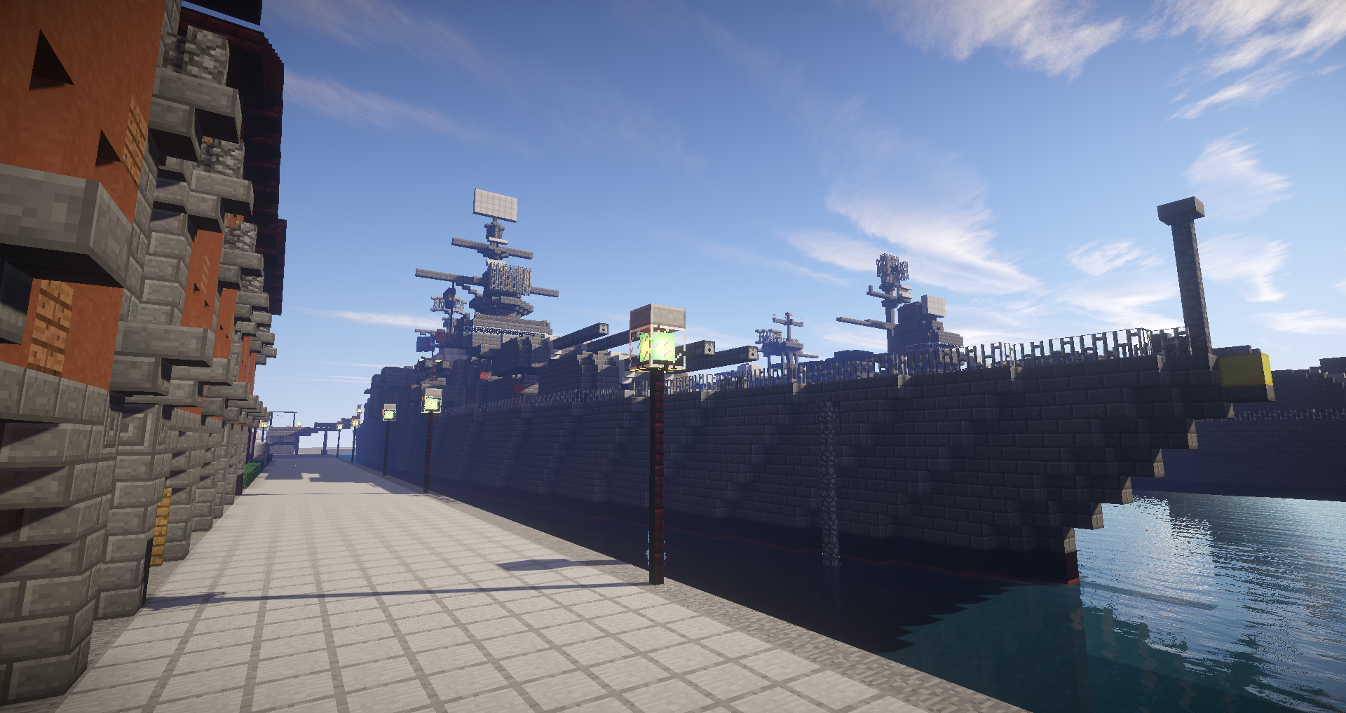 セントラル=オストリカ海軍基地に停泊する朝日皇国親善艦隊。写真左側奥から大型巡洋艦あおば(第13戦隊旗艦)・軽巡洋艦おおよど・駆逐艦しらなみ。