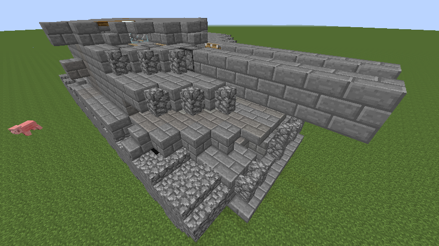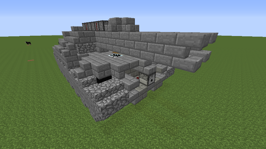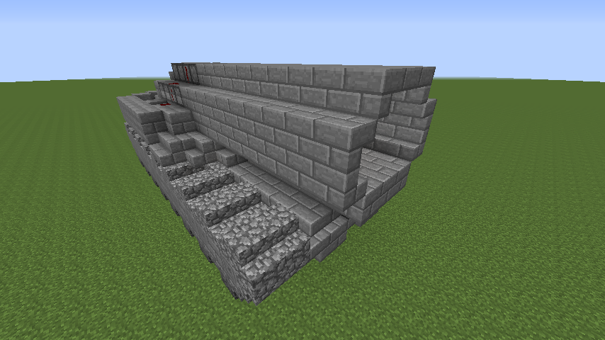 △ディスペンサー&ピストン一点圧縮式(DPC)TNTキャノン ディスペンサーで面積2マスに着火TNTを圧縮、その後ピストンで一点に圧縮する。実用範囲内の飛距離があり、↑のキャノンより扱いやすく、コストが低い。最近はほとんど使われていない。