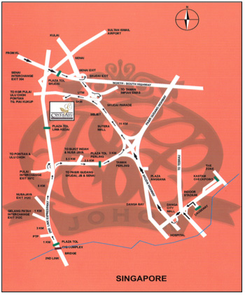 ◆ コーズウェイ(シンガポールとマレーシアを結ぶ道路)まで約20分、ジョホール セナイ空港まで約15分、アクセスも良好です。