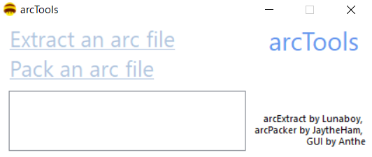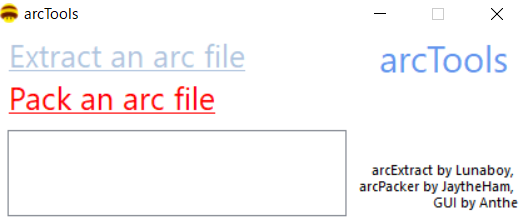 終わったらarsToolsを開き"Pack an arc file"をクリックしてLocalizeData>JpJapanese>MessageDataにあるSystemMessageフォルダを選択し圧縮してください。