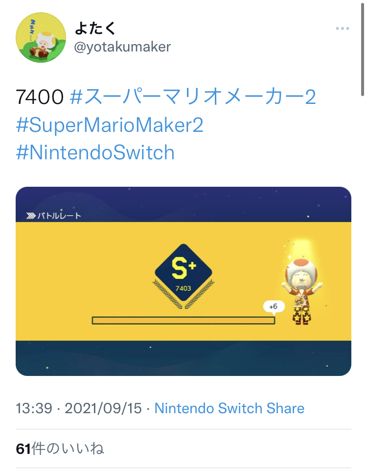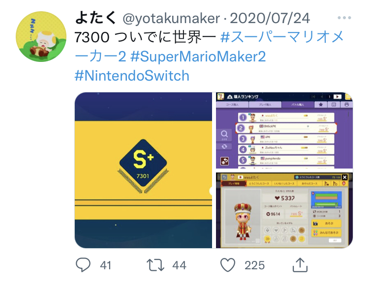 じおねお氏に次ぐ世界2番目の7300と同時に世界一の快挙も達成している。制作も非常にレベルが高く特に針ゲーコース作りは数万回プレイされても未だにクリア者が現れない鬼畜針ゲーコースも生産している。