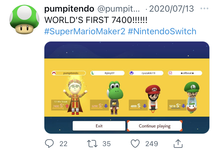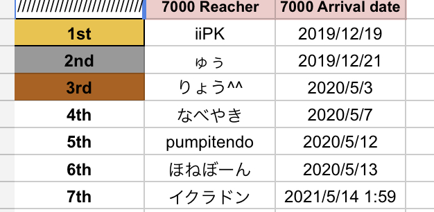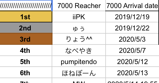 ほねぼーん氏を追い抜かし世界1位の座を奪い取る。その後も徐々に伸ばしていき2020/7/13に世界初の7400到達を成し遂げる。