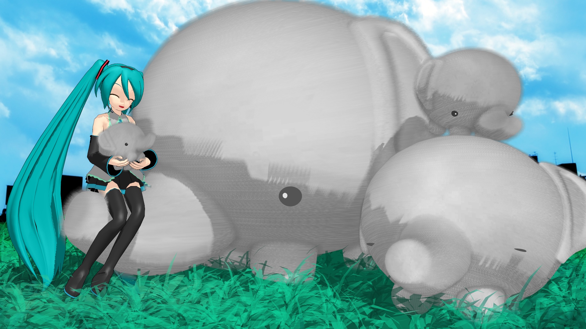 ぬいぐるみのぞーさんです。ミクさんは大きさ比較用。