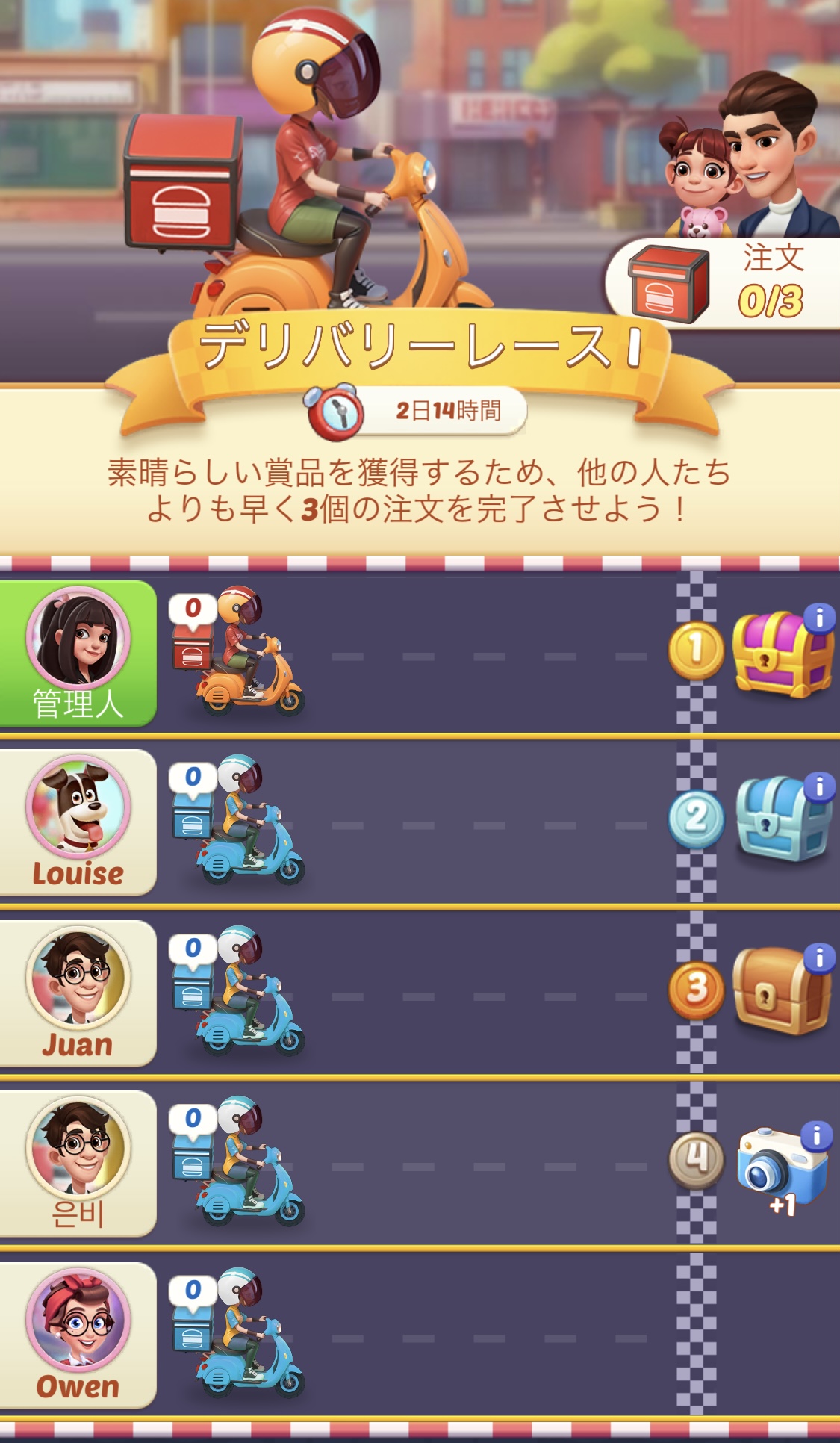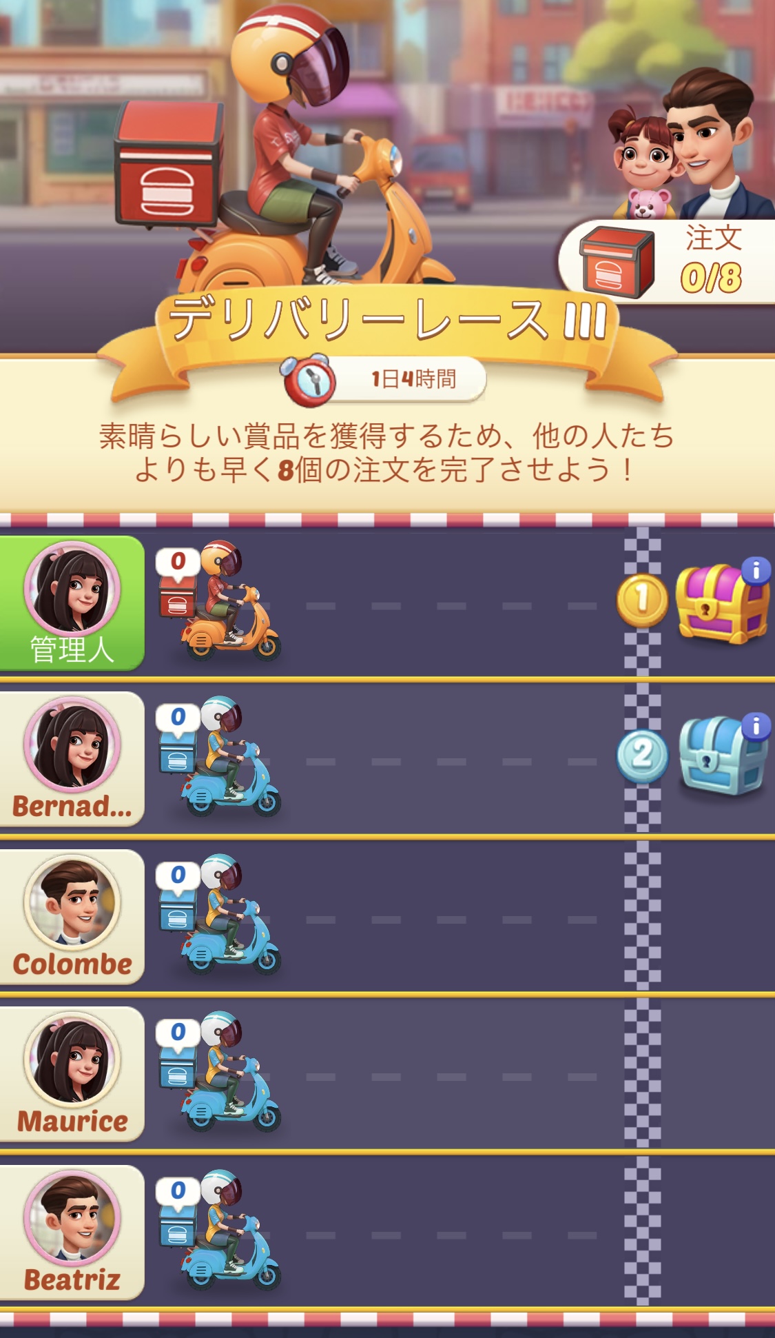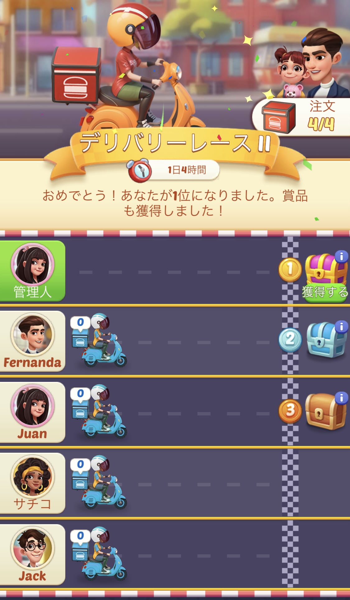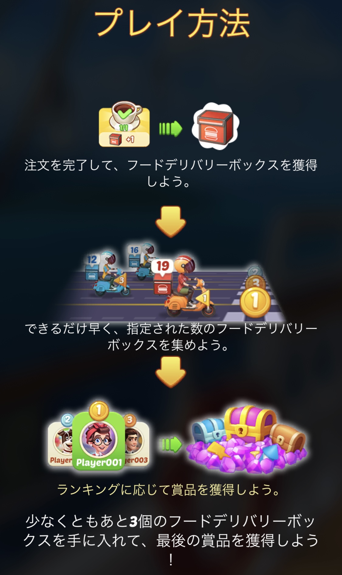 ②誰が早くフードデリバリーボックスを集められるか、4人の他のプレイヤーと競争