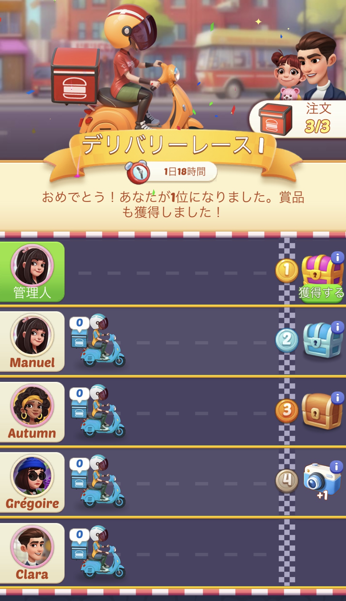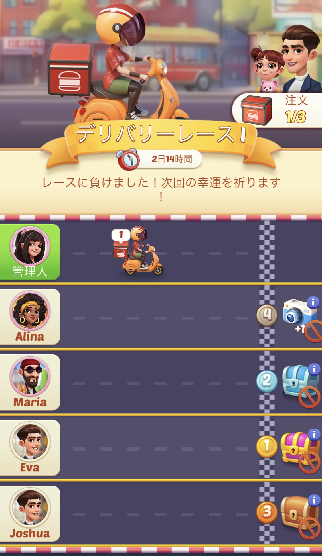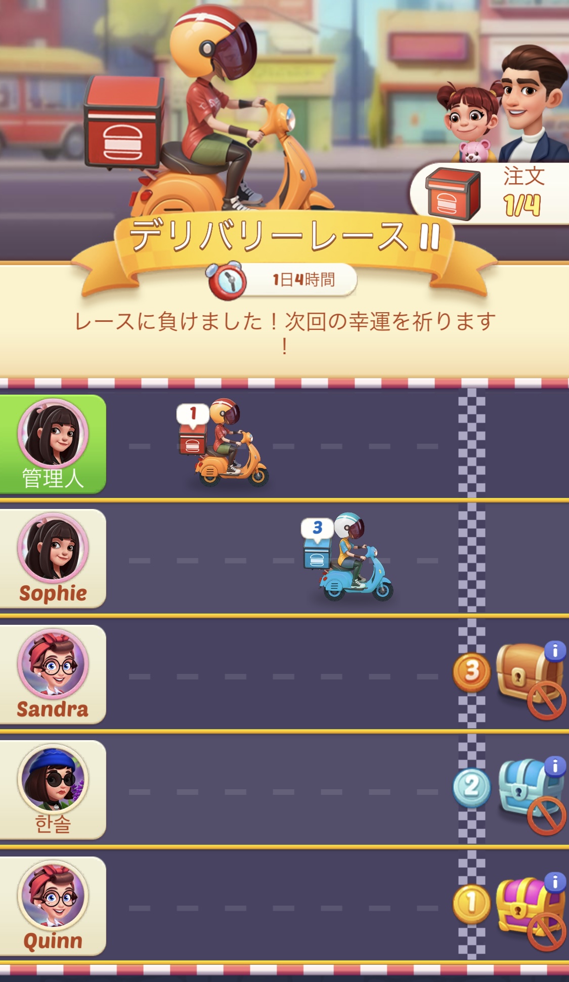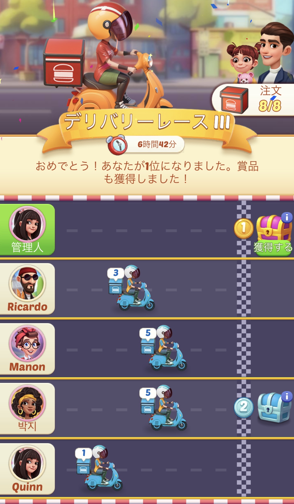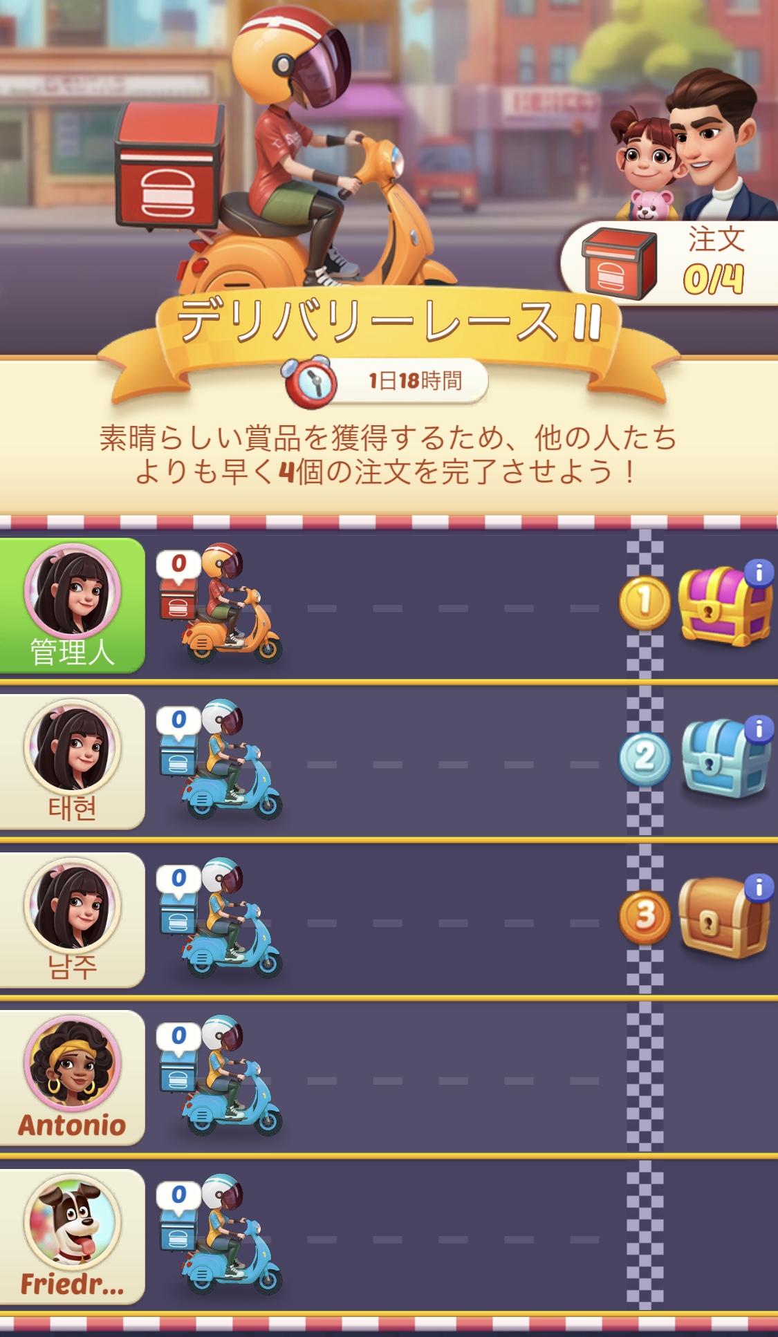 ②誰が早くフードデリバリーボックスを集められるか、4人の他のプレイヤーと競争