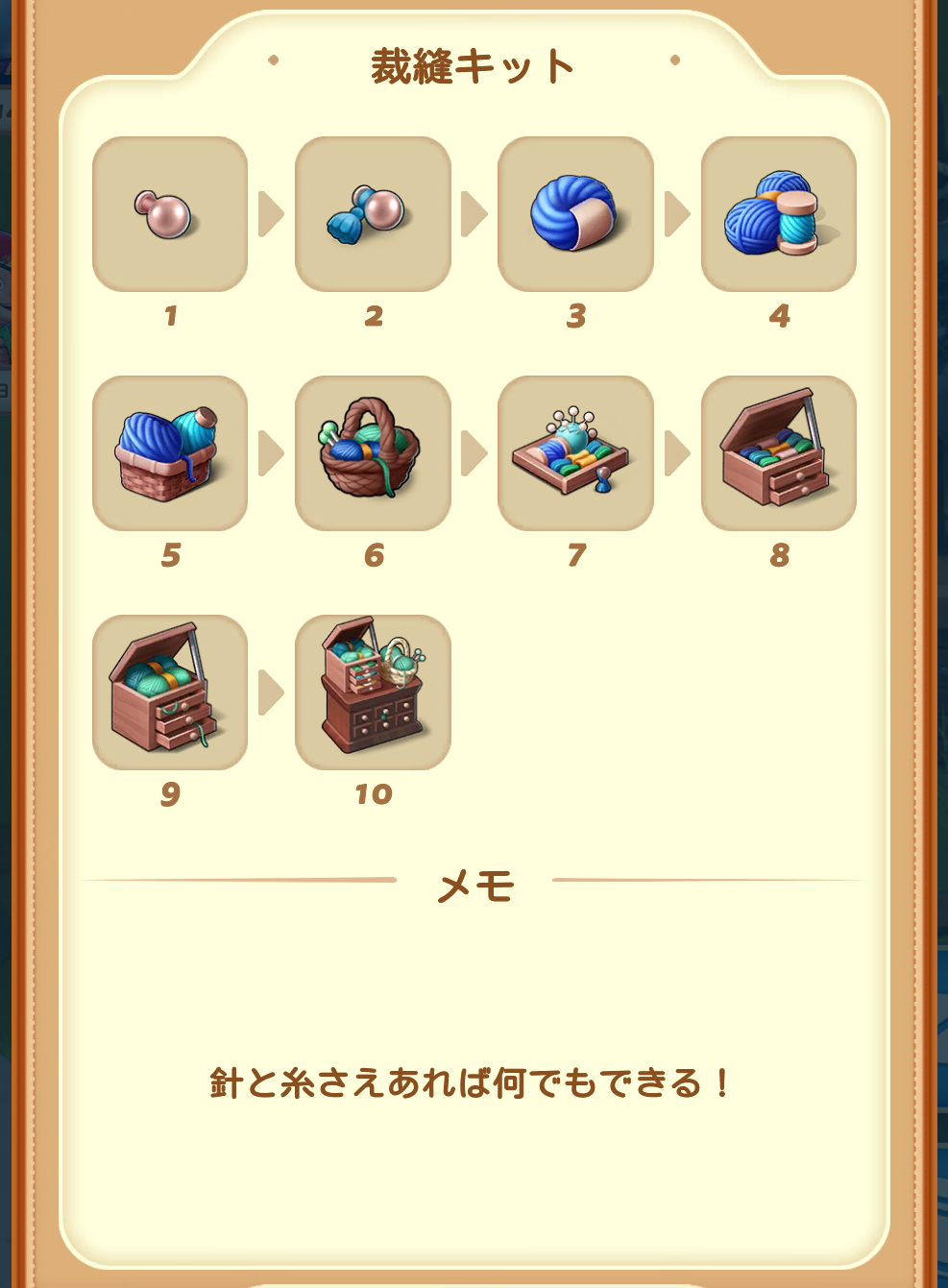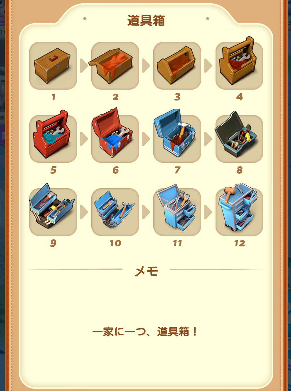 たんすのアルバムコンプリートと足りないレベルの個別画像。