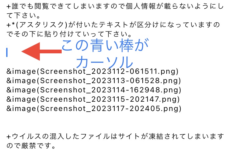2. テキスト入力カーソルを画像を入れたい場所に移動させます。