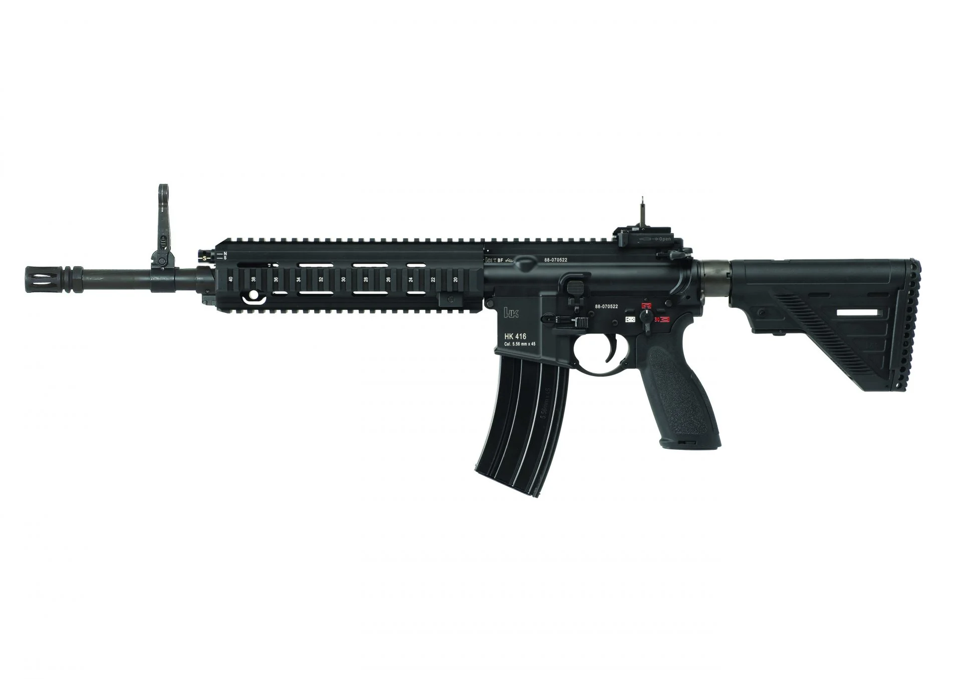 HK416Dの改良型。様々なボタンが両利きに対応したほか、耐久性、安全性も向上。