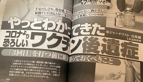 週刊誌が発売。英国ではコロナルール撤廃、米国ではワクチンの安全性は認められないと裁判所が下す、我国岸田政権の采配はどうなると・・・不安な皆の衆、オミクロン株は軽症との情報もあるが、市民の生命、財産を守る市会議員候補にお尋ねすればよい。