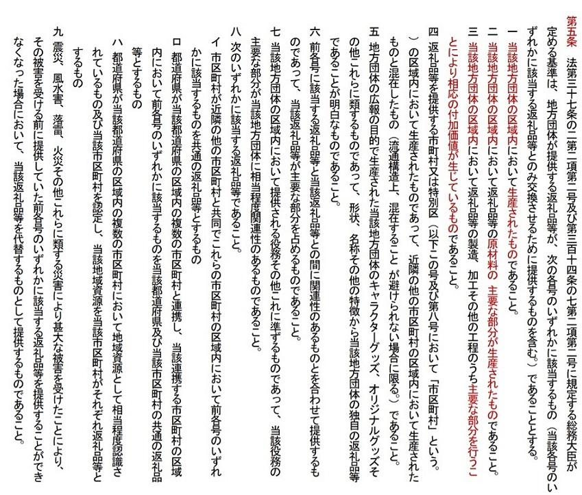 『総務省告示第197号第五条の規定に基づき、市内の業者が市外で生産れた原材料を使用し』と答弁を何故したのか?