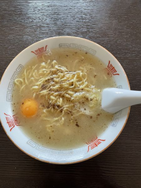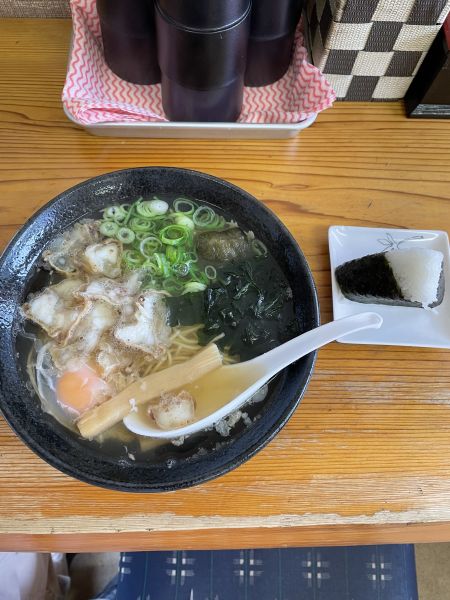 - 吉浦の「だし道楽」で「かすラーメン」。