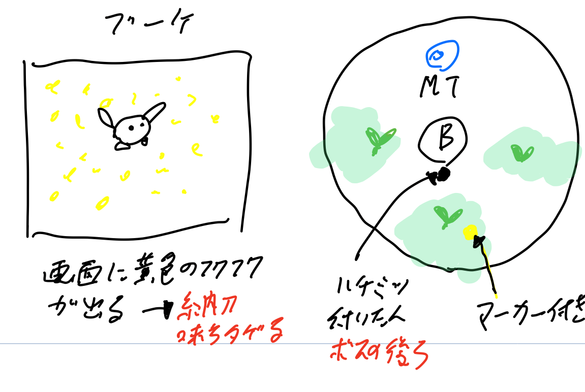 - 視線切り法・・・・近接さんがマーカーが付いてもギリギリまで殴れる。後ろに茨が無くても吸い込み処理ができる。しかし、鎖を切るのが少しコツがいる。味方を吸い込みに巻き込みやすい