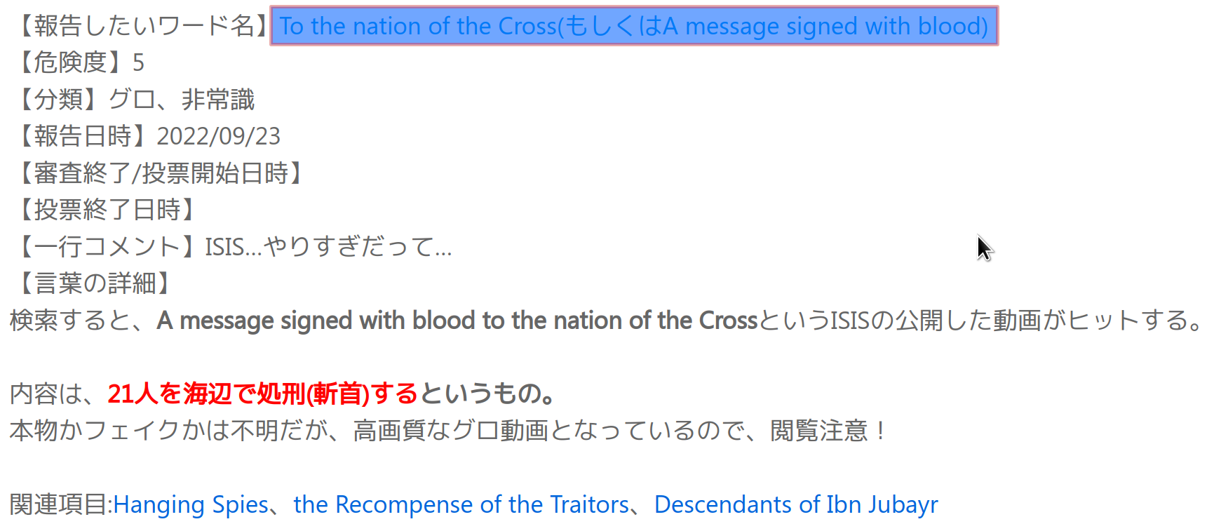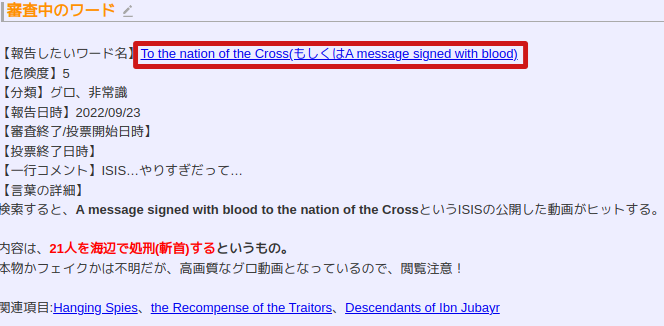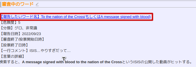 2022/09/29:報告されたキーワード名の審査方法が掲示板ではなく投票システムを用いた方法に変更されました。
