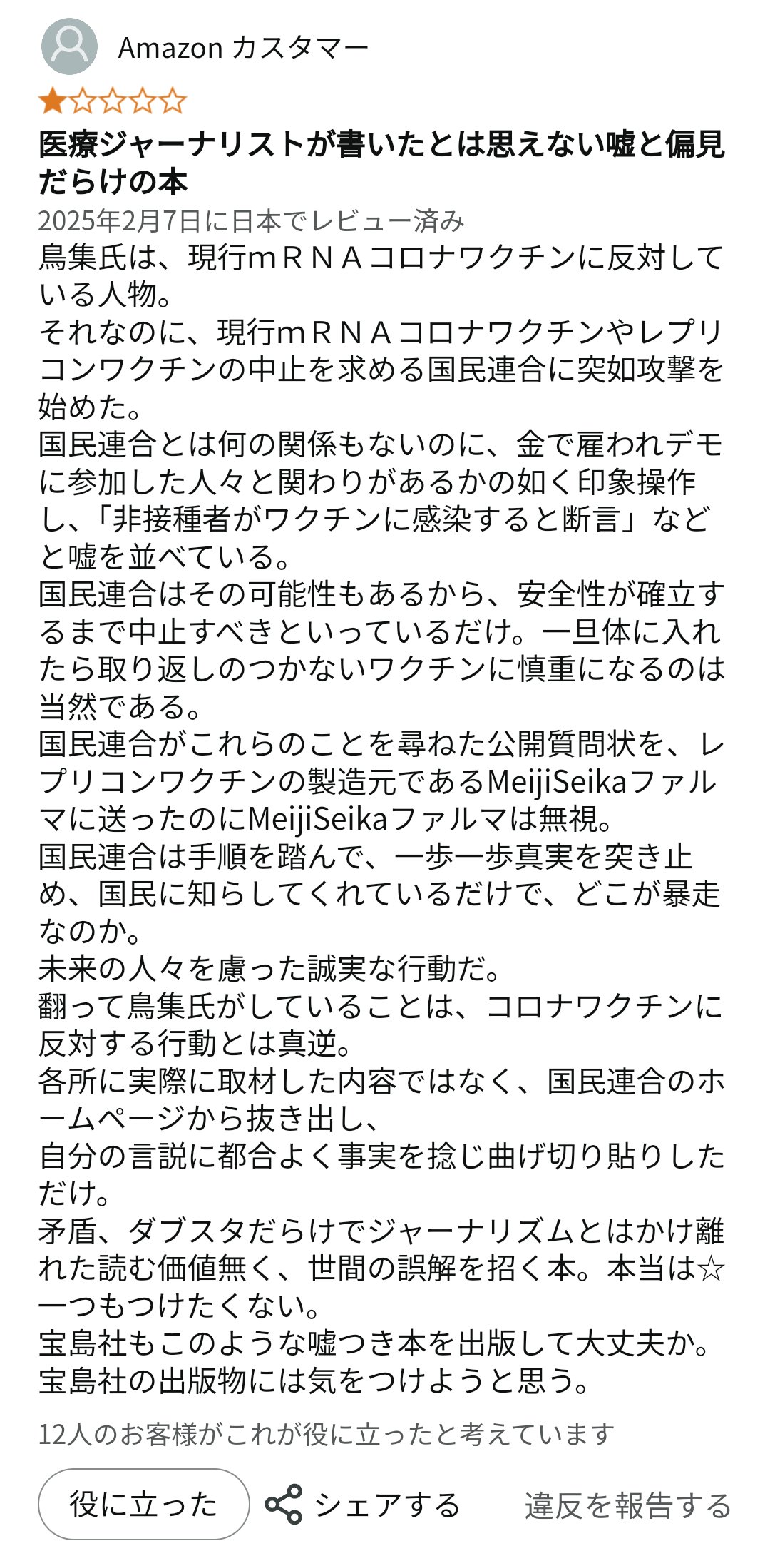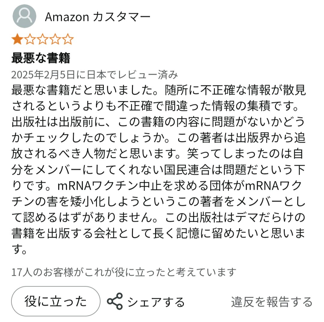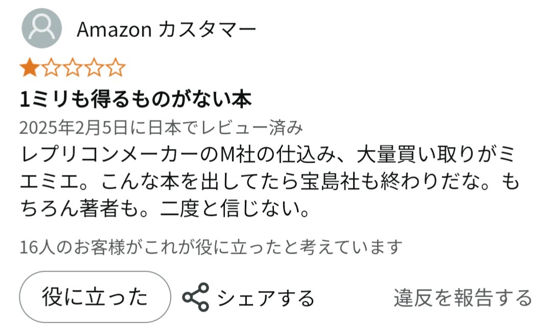 せっかく読んで書評してくれた読者の方々を「アンチ」呼ばわりとは、聞いて呆れる現実逃避ですね。