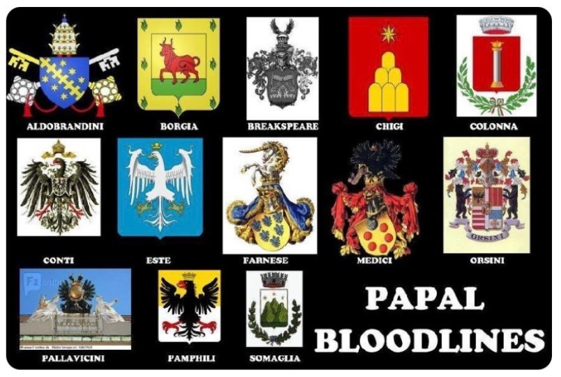 All interbreeding/marrying, the 13 most common Black Nobility Roman Papal bloodline family names and emblems can be seen below: