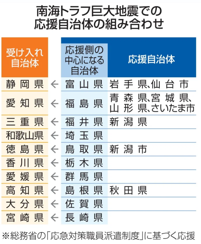 応援職員を即時派遣する自治体を総務省が事前に割り当て