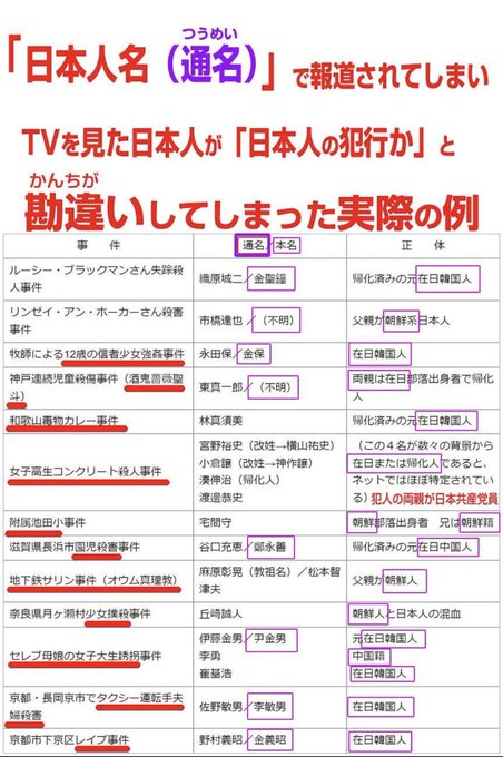 <>在日コリアンの犯罪が通名で報道されるという事実はありません。