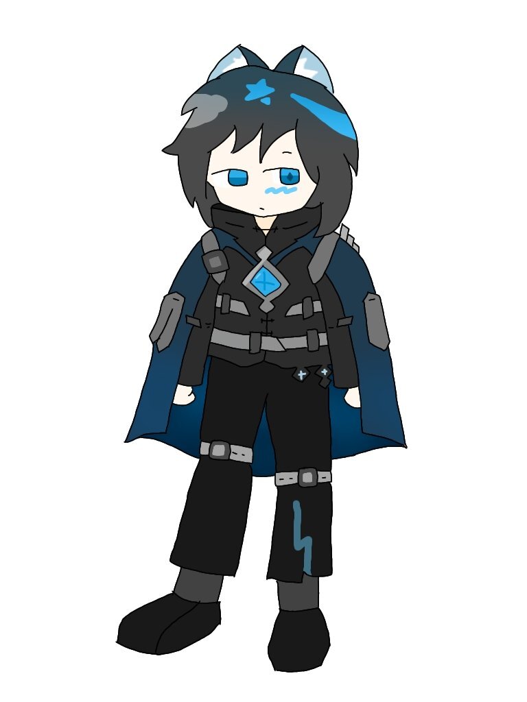 もともとのハチョウサと同じく、黒+水色のカラーリング。ベルトの多いコートにマントを着込んだ、だいぶ暑そうな服装。