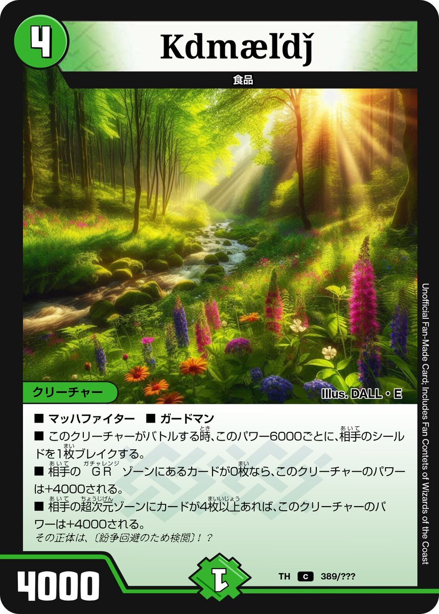 まともに読むことも難しい、謎の名称を持つカード。イラストもなにを表しているのか判然としない自然の風景であり、いったい何がこのカードのテーマなのかがわからない。