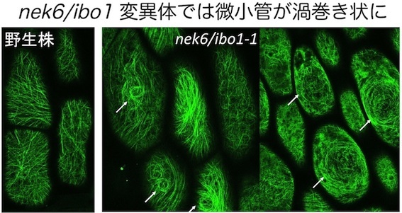 この変異体がNIMA関連キナーゼ6(NEK6)を欠損したものであることを明らかにしました(Motose et al. 2008)。