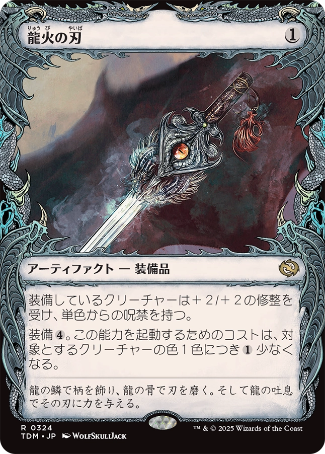 龍の鱗で柄を飾り、龍の骨で刃を磨く。そして龍の吐息でその刃に力を与える。 Dragon's scales to adorn the hilt, dragon's bones to polish the blade, and dragon's breath to kindle its edge. タルキール:龍嵐録