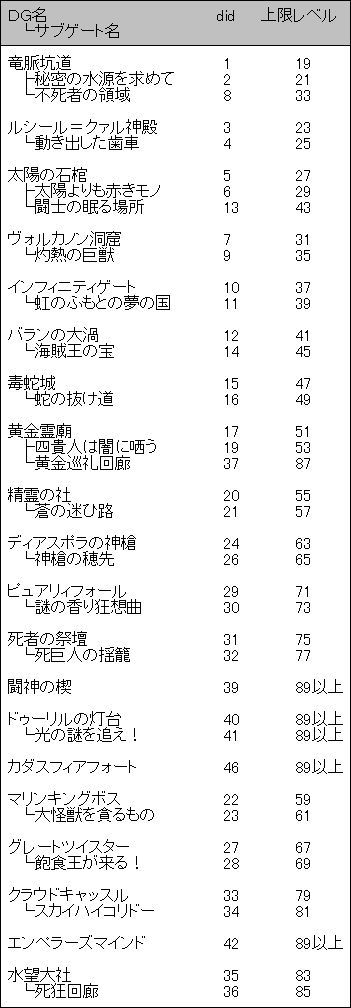 DGのアイテム上限を纏めてるサイトってなかったっけ?