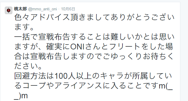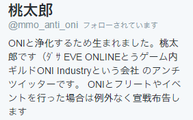 ・ツイッター:24h気を緩めるな oniは守ってくれないぜ。#evejapan #eveonline