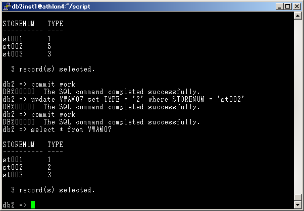 端末1でVWAM07のstorenum=st002のtypeを5 にupdate