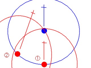 濃い青の円はそれぞれ濃い青の丸と等距離です。