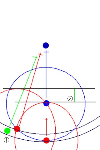 また、②で敵の未来の位置に到達する前に②の緑の線の長さがまっすぐ追うより長く、