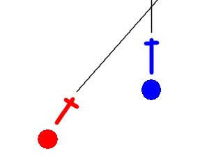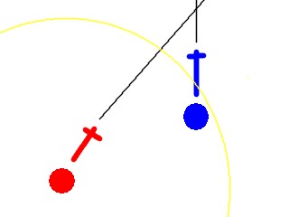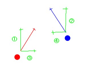 敵と自分が斜めに移動する動きの図をを同じ方向に動くものと近づく方向に動くものが等しくなるようにします。