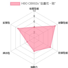 またフレームの剛性は機体の拡張性に直結する為、“カレンデュラ”を外して別の兵装を取り付けることで全く違う性能を持たせることも可能。そのためカレンデュラを搭載している状態を便宜上“金盞花・砲”と名付けられた。
