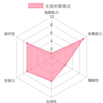 拡張性、汎用性、整備性を出来うる限り追求した機体であり、武装に関しては他社の武装を装備することを前提としている。一部の専用機装備を除いてこれは成功しており、多少の操作性の劣化はあるものの武装調達の容易さや鹵獲武装の利用など継戦能力に貢献している。