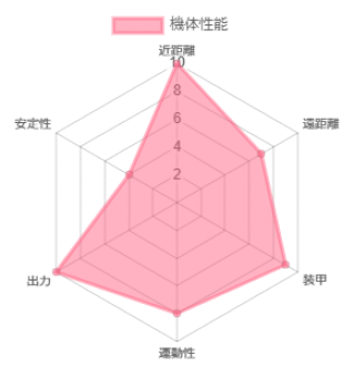 遠距離にも対しても十分対応可能となっており、状況を選ばず戦うことができる高水準の機体となっている。