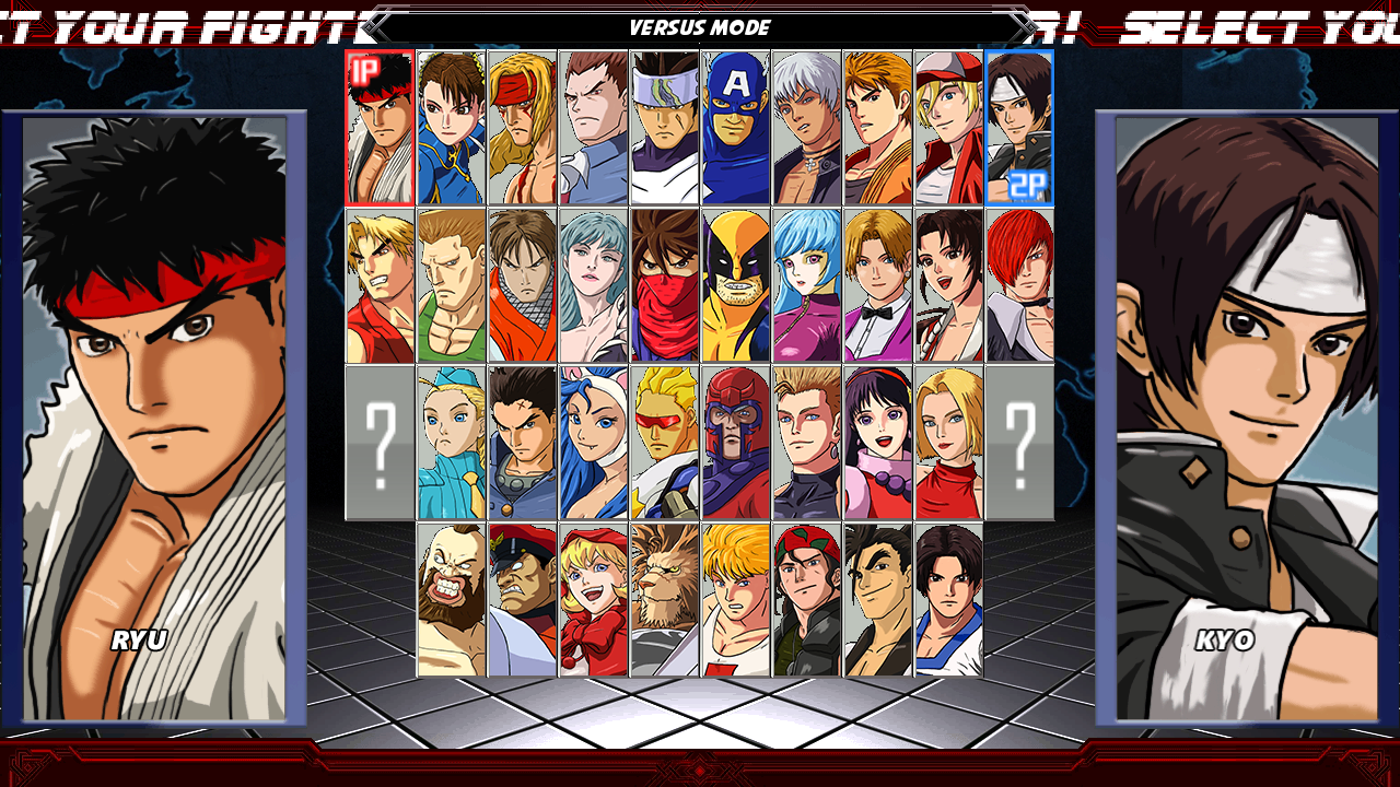 リュウ、春麗、アレックス、ケン、ガイル、キャミィ、ザンギエフ、ガイ、ベガ デミトリ・マキシモフ、モリガン・アーンスランド、フェリシア、バレッタ ハヤト、一文字伐、ストライダー飛竜、キャプテンコマンドー、レオ