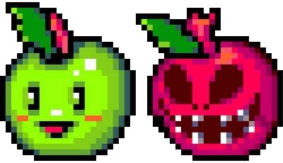 普段は青リンゴの姿で笑顔を見せているが、吸い込もうとしたり弱い攻撃を当てると赤リンゴに変化して怒り顔になる。行動パターンはスカーフィと同じ。