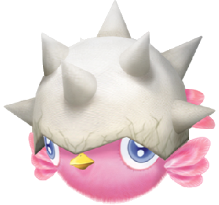 桃色の身体で鳥か魚かはよくわからないキャラクター。頭部にトゲ付きの殻を被っている。