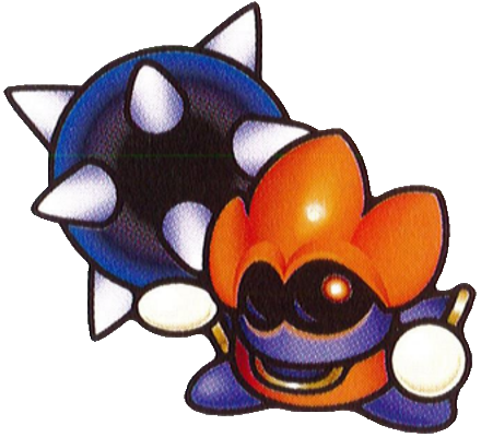 普段はカービィがいる位置に少しずつ前進し、時折止まって鉄球を振り回してから前方へ投げて戻す。2-3では鉄球を振り回しながら只管前進する個体もいる。最大HPは「8」。