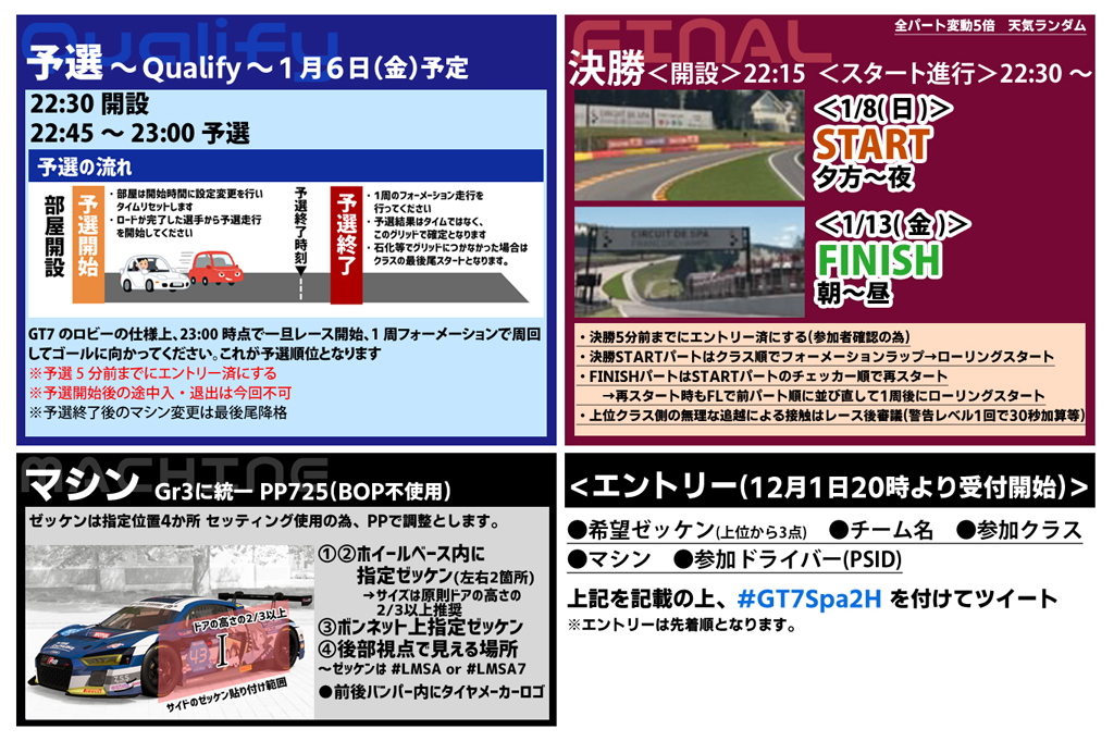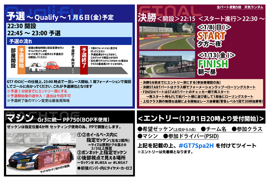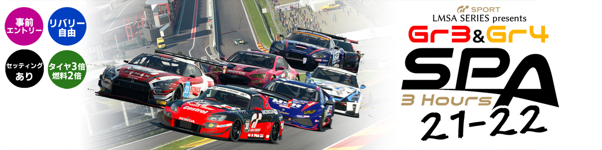 ●規定はスパ3Hと同じ形 競技規定1-1参照。ただしマシンはGr4のみ