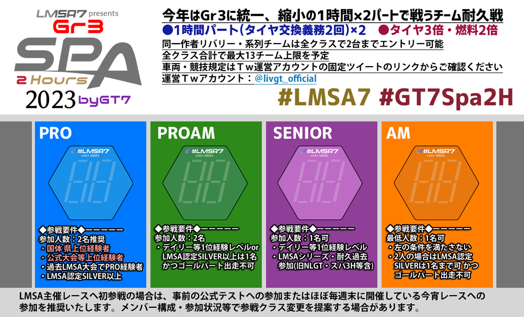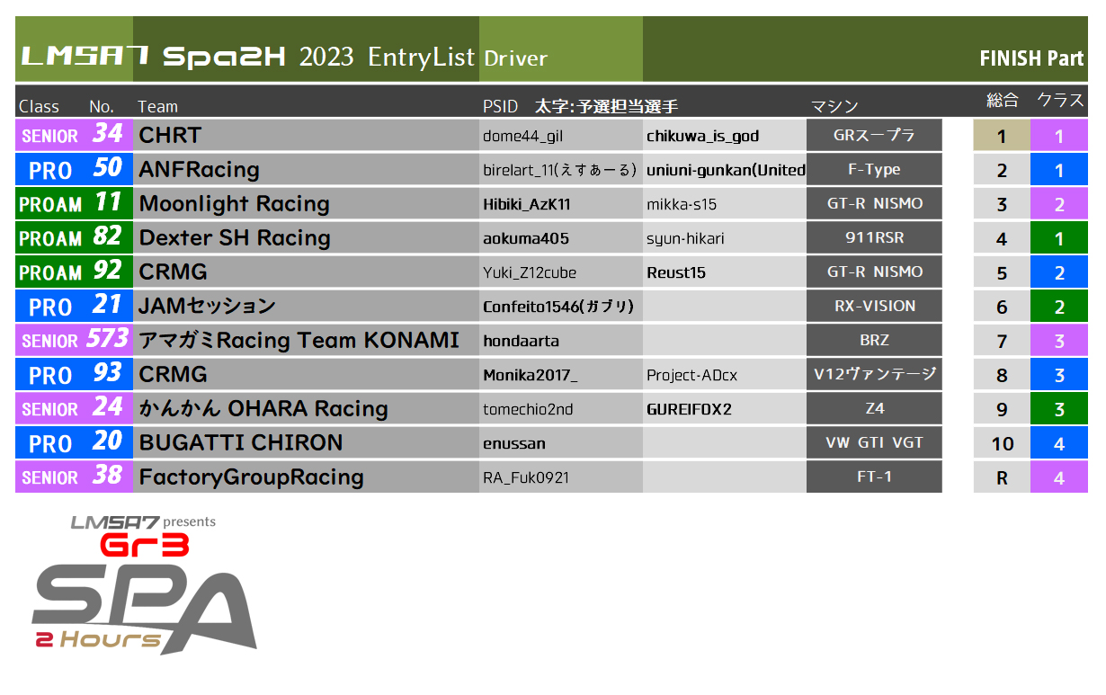 ●LMSA4シリーズ戦へのボーナスpt(5pt付与)については、実走行したドライバーのみとする(石化等によるリタイヤも含む)。