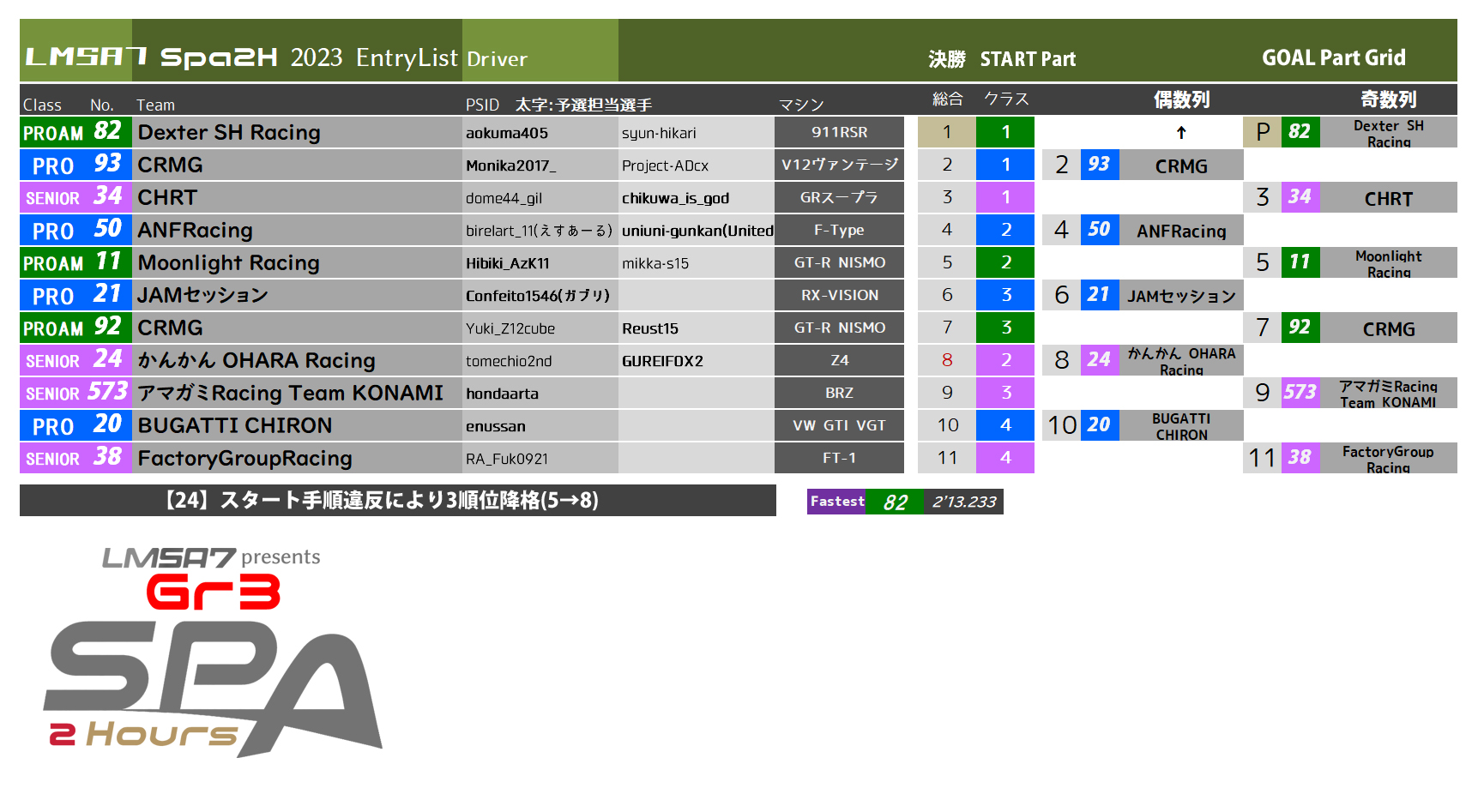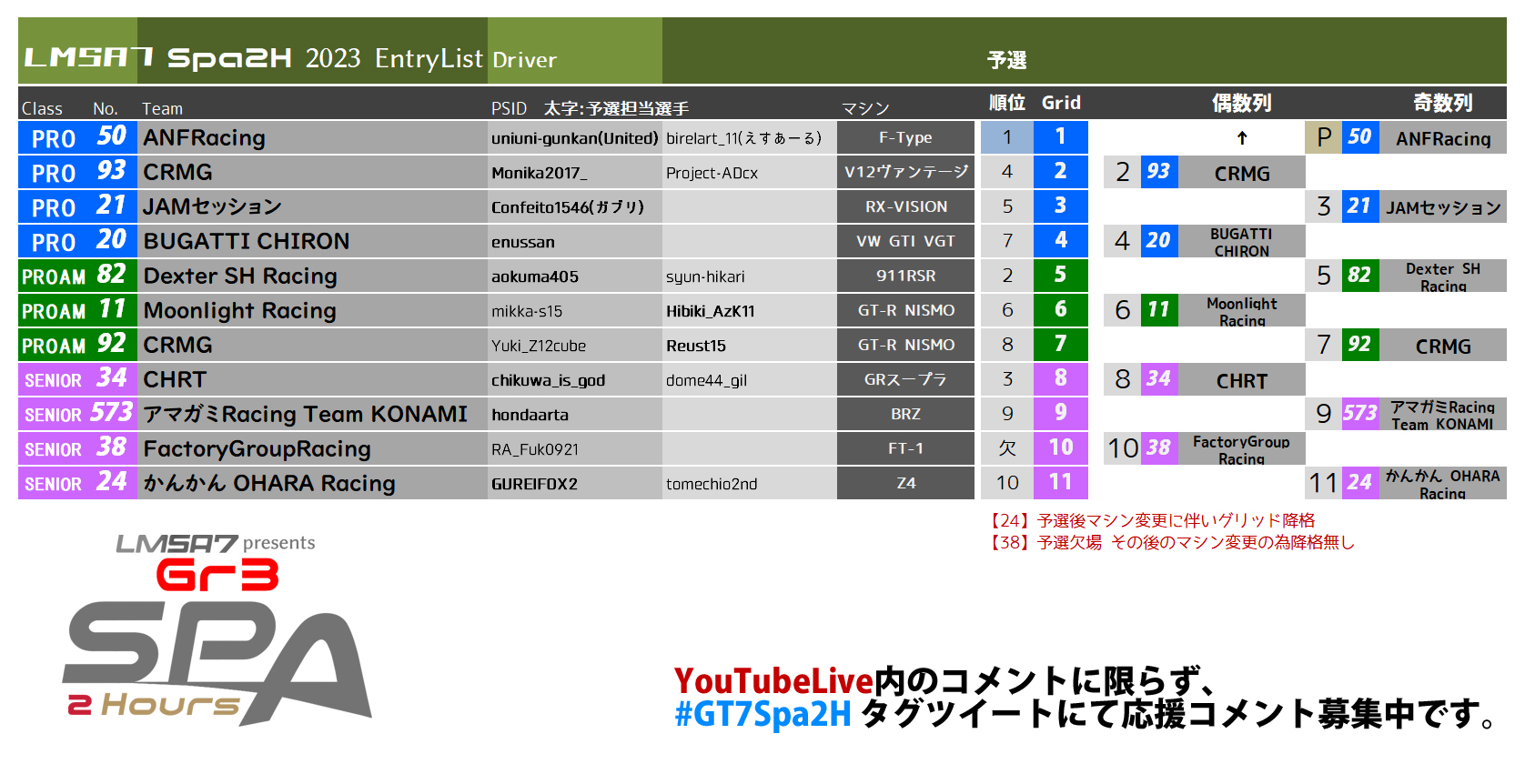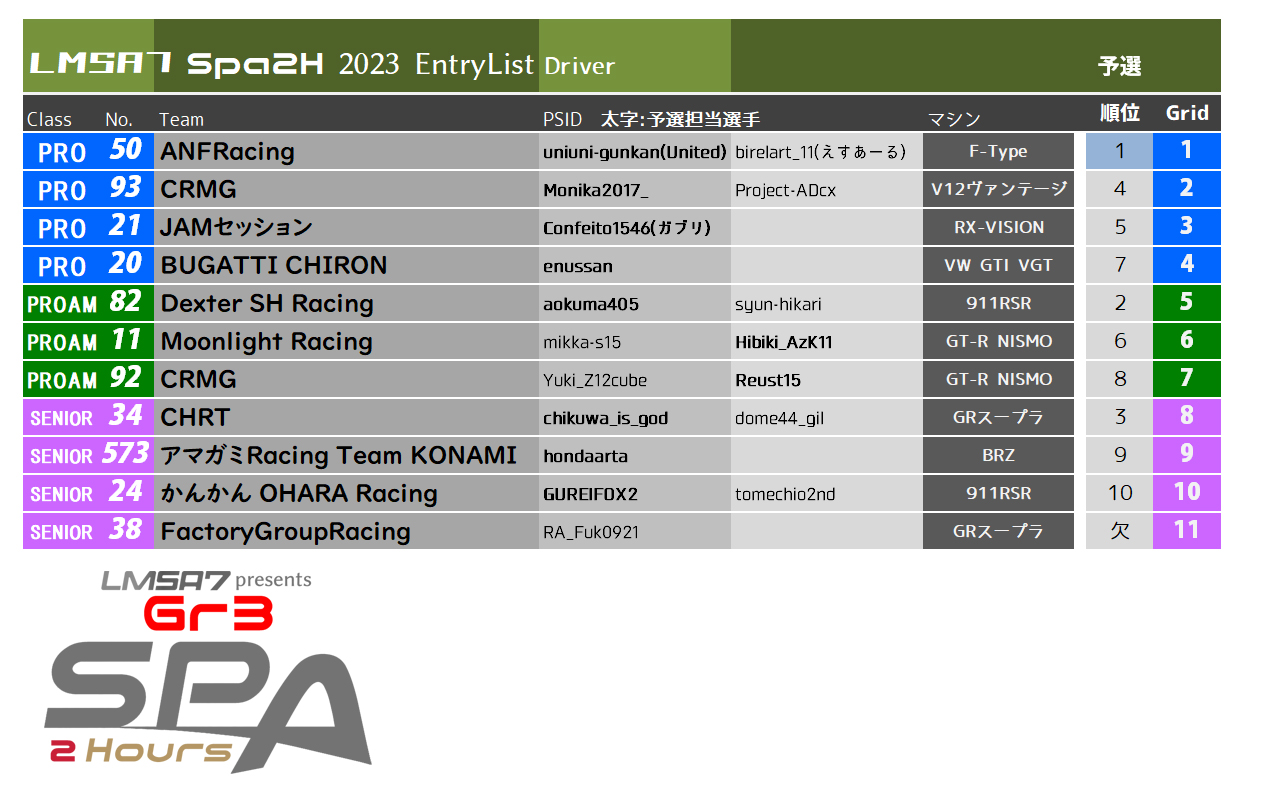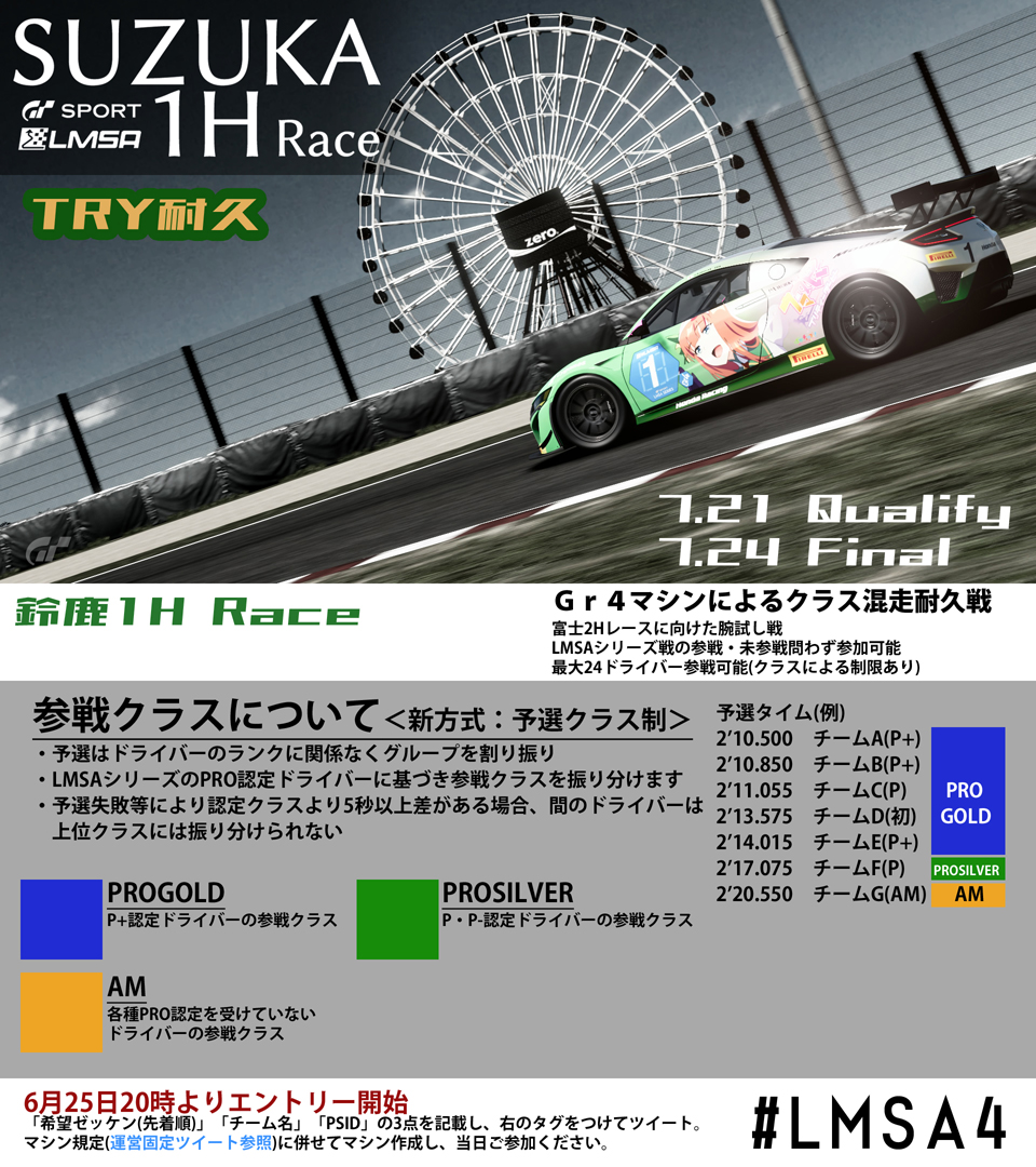 以降エントリーは予選タイム20秒加算・LMSAボーナスpt無し