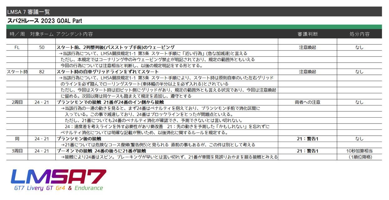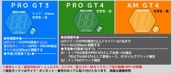 ●LMSA4シリーズ戦へのボーナスpt(5pt付与)については、実走行したドライバーと補欠ドライバーとする(石化等によるリタイヤも含む)。