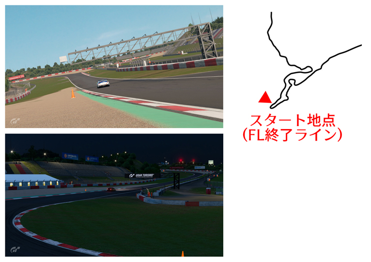 GTスポーツ上でスタートしてから指定ライン(後述)までフォーメーションラップ・先頭最高100km/h制限