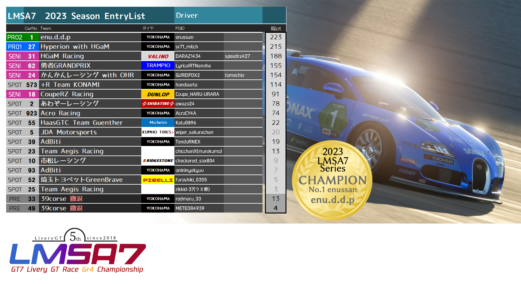 2023シーズン最終結果
