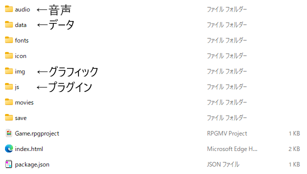 次にツクールで新規プロジェクトを作成し、ダウンロードした素材をそれぞれ適切なフォルダに入れましょう。