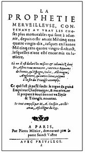 La Prophetie merveilleuse, contenant au vray les choses plus memorables